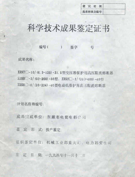 撫順電瓷廠電瓷電器公司是原機(jī)械工業(yè)部定點(diǎn)生產(chǎn)高壓隔離開關(guān)、高壓熔斷器、絕緣子、避雷器的骨干企業(yè)之一。生產(chǎn)歷史悠久,技術(shù)力量雄厚,產(chǎn)品質(zhì)量可靠,產(chǎn)品遍及全國,遠(yuǎn)銷國處。具備高壓隔離開關(guān)、高壓熔斷器的設(shè)計(jì)、開發(fā)及批量生產(chǎn)的能力。擁有英國BRUSH公司具有國際先進(jìn)水平的高壓熔斷器制造技術(shù)和生產(chǎn)線關(guān)鍵設(shè)備,完備的檢測儀器。能夠批量生產(chǎn)符合國家和國際標(biāo)準(zhǔn)的3.6kv-40.5kv各種規(guī)格的戶內(nèi)外高壓隔離開關(guān)、高壓限流熔斷器系列產(chǎn)品。產(chǎn)品在國家高壓電器質(zhì)量監(jiān)督檢測中心通過全部型式并取得了兩部鑒定和型號證書,是國家經(jīng)貿(mào)委城農(nóng)網(wǎng)改造的推薦產(chǎn)品,通過了ISO9002國際質(zhì)量體系認(rèn)證,曾榮獲機(jī)械部科技進(jìn)步二等獎(jiǎng)和地方優(yōu)秀新產(chǎn)品獎(jiǎng)。
